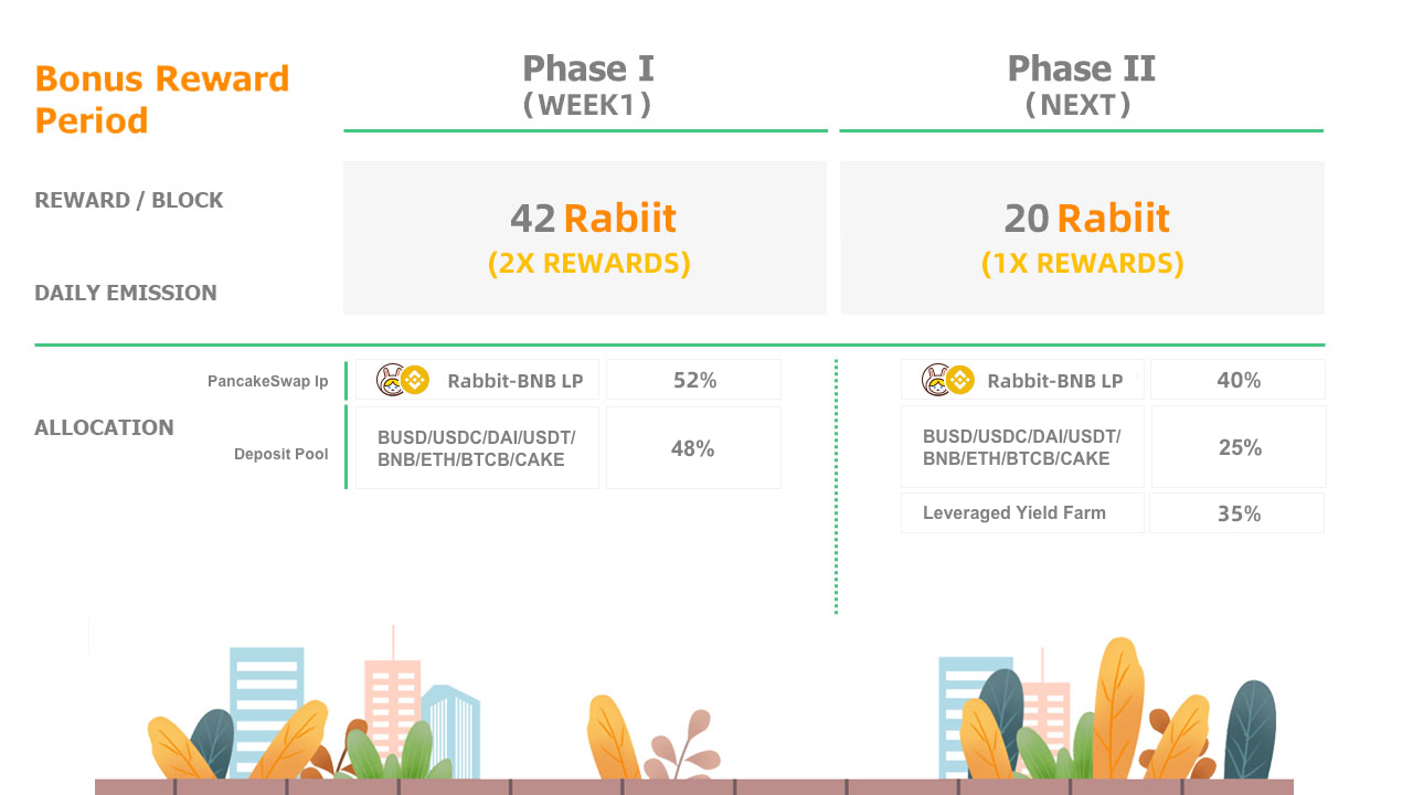 Open deposit vaults and pancake liquidity pools, electronic mission rate: 42 RABBIT / block. This should take about a week.